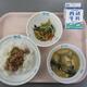 ぶたにくのあまからいためどん こまつなともやしのごまあえ みそしる 牛乳