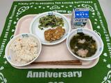 今日は、今年度はじめての給食でした。メニューはこぎつね寿司、銀さわらの西京焼き、キャベツの胡麻和え、すまし汁、牛乳です。