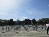 今朝は、体育朝会でした。全校児童が体育着に着替え、青空の下で集合しました。体育委員の児童が早くから校庭で準備をして、全員が迷うことなく整列できるように、プラカードをもって立っていてくれました。よって、どの学年も素早く整列し、けじめをもって始めることができました。