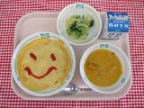 オムライス しゃきしゃきポテトサラダ キャベツのスープ みかん 牛乳