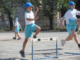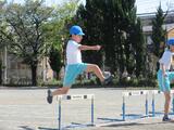 校庭では5年生が障害走の練習をしていました。今日はまず走ってみて、自分に合うハードルの間隔を見つけていました。何本も走って確かめるのですが、子供たちは真剣に学習に取り組んでいました。これからどんどん上達していくことと思います。