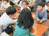 その上で、「ふわふわ言葉」を言われるとどんな気持ちになるのか、「ちくちく言葉」はどうか、なども話し合いました。中には、「ぼくは、ちくちく言葉を言ってしまったかもしれない。」と自分を素直に反省している子もいて、感心しました。「授業中など先生がいるときは、ふわふわ言葉がたくさん出るけど、休み時間はちくちく言葉が多くなる気がする。」などと、分析している子もいて驚きました。