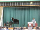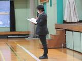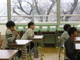 終業式の後、各学級を回っていると、通知表を配付していたり、冬休みの生活や新学期の準備などを話していたりしていました。くすのき学級では、担任が説明していることを子供たちがうなずいたり、「はい」と返事をしたりしてとても真剣に聞いていました。私が後ろから教室に入っていくと、担任のほうを指さして『先生の話を聞くんだよ。』と教えてくれる子もいました。