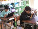 1組は総合的な学習の時間で、外国の中で自分が関心のある国を選び、その国の地理的な状況や名産物、産業などを調べていました。クロームブックを活用して調査し、わかったことをスライドでまとめいていました。子供たちは主体的にどんどん調査を進めていました。個々の学びになりましたが、とても真剣に学習していました。