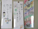 書初め展は、各学年の課題の文字を12月から一生懸命練習し、上達した字を掲示しています。3年生以上は筆でかいたもの、1・2年生はフェルトペンで書いたものになります。みんなとても上手になっており、これを機会に字を美しく整えて書くことに対し、意識を高めてくれるといいなと思っています。