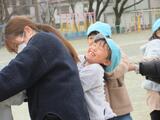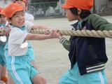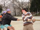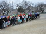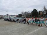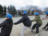 赤・青・黄の3色にわかれ、1~6年生がみんな一緒に綱を握って競い合いました。担任も加勢に入ったり、大きな声で応援したりしていました。空は曇っていて、風が冷たく、寒い空気の中での実施でしたが、子供たちは熱い気持ちで参加し、非常にもりあがりました。勝ったチームは飛び上がって喜んでいました。