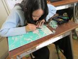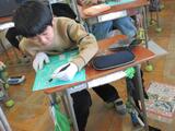 今日は、各教室を見回っていると、4年生が図工の学習で彫刻刀で板を削り、版画の絵を作っていました。細かい線をうまく出せるように、手を切らないように、子供たちは非常に真剣に作業に臨んでいました。