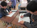 となりの学級では、最後の授業参観に向けて、学習発表会の準備をしていました。「僕たちは算数のグループだから、算数のクイズを考えるんだ。」「私たちは、生活科のグループです。」等、自分が担当した内容をしっかりと教えてくれました。