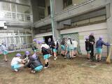 排水溝の掃除もしてくれました。排水溝にはたくさんの泥が詰まっていて、非常に力のいる作業でしたが、友達と力を合わせ、手足を汚しながらも一生懸命かき出してしてくれました。物置の中の物なども、水洗いをしてとてもきれいにしてくれました。6年生の奉仕の心だけでなく、友達と協力する態度、最後までやり遂げる姿勢など、本当に素晴らしいと思いました。