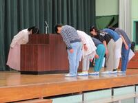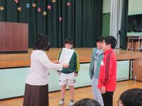 修了式では、各学年、くすのき学級の代表の児童が壇上にあがり、校長が修了証を授与しました。どの子もとても立派な態度で厳かに修了証を受け取っていました。